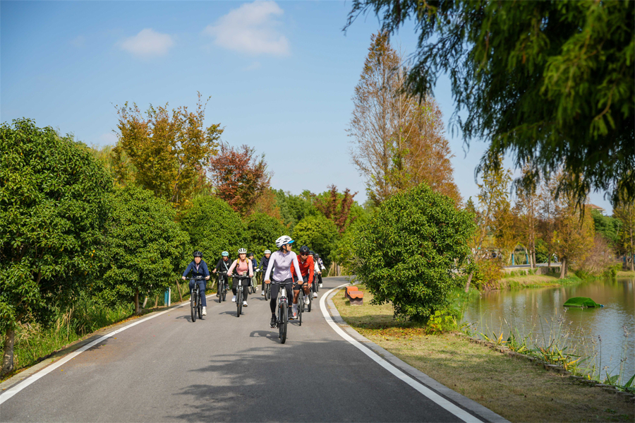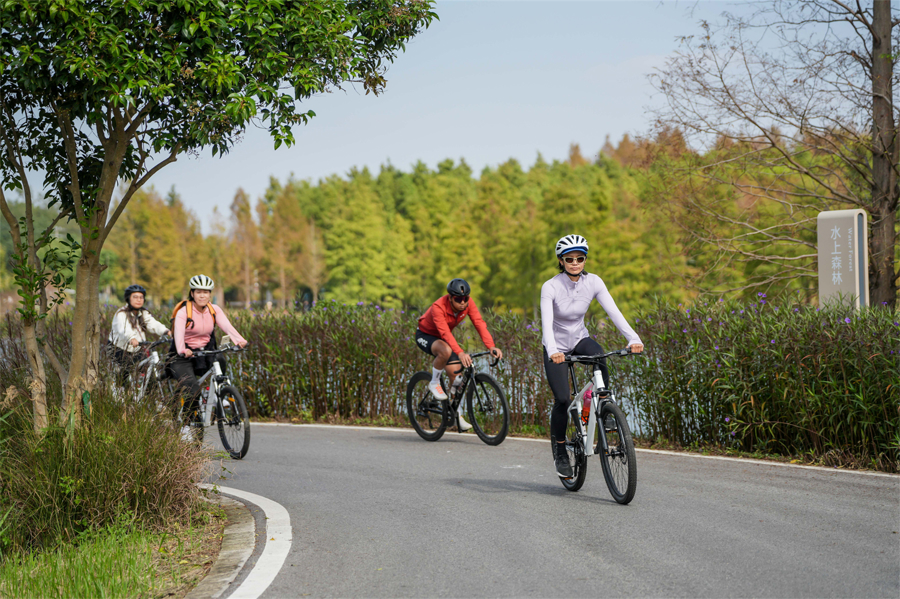活动设置多个互动环节,包括山深水榭补给打卡、青西灵镜“同款pose”挑战、水上森林生态主题摄影等。骑友们用镜头记录水乡之美,也让“沪派江南”风貌在社交媒体上自然传播,让骑行体验兼具趣味性与传播力。