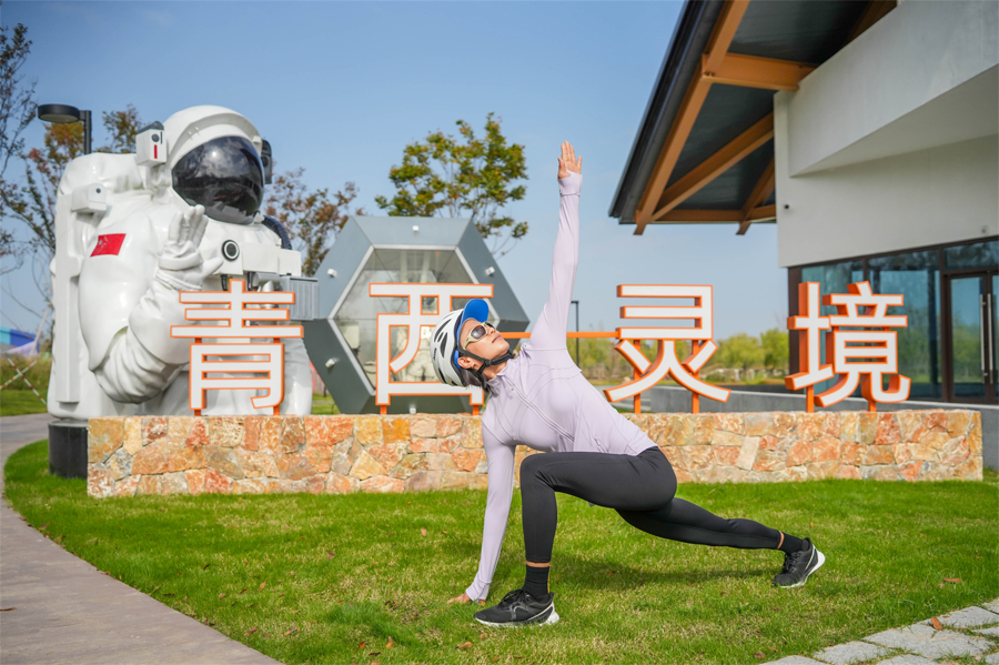 在青西灵镜打卡点,徐莉佳与骑友们共同完成特色pose挑战,并分享骑行运动的乐趣:“骑行对我们的关节特别友好,相比跑步来说,在骑行的过程中能看见更多的风景,持续的运动时间也更长,这也是我在运动队时期以及在退役后依旧在坚持的一项运动。”她的参与不仅提升了活动影响力,更让“沪派江南”的内涵从静态的文化保护,延伸至动态的体育精神和健康生活方式的传播,更将骑行活动与即将开幕的中国国际帆板大师赛紧密相连,形成“体育+文旅”的双向联动,为青浦秋日注入蓬勃的运动活力。